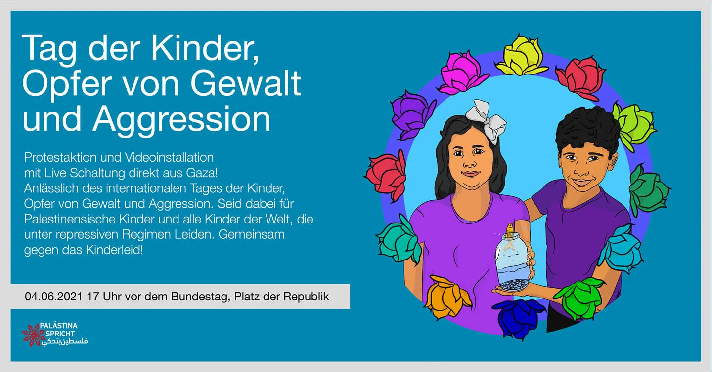 Anlässlich des internationalen Tages der Kinder, die unschuldige Opfer von Gewalt und Aggression geworden sind, laden wir dazu ein, einen genaueren Blick auf das Leben palästinensischer Kinder zu werfen. Seid dabei für Palästinensische Kinder und alle Kinder der Welt, die unter repressiven Regimen leiden. Gemeinsam gegen das Kinderleid!