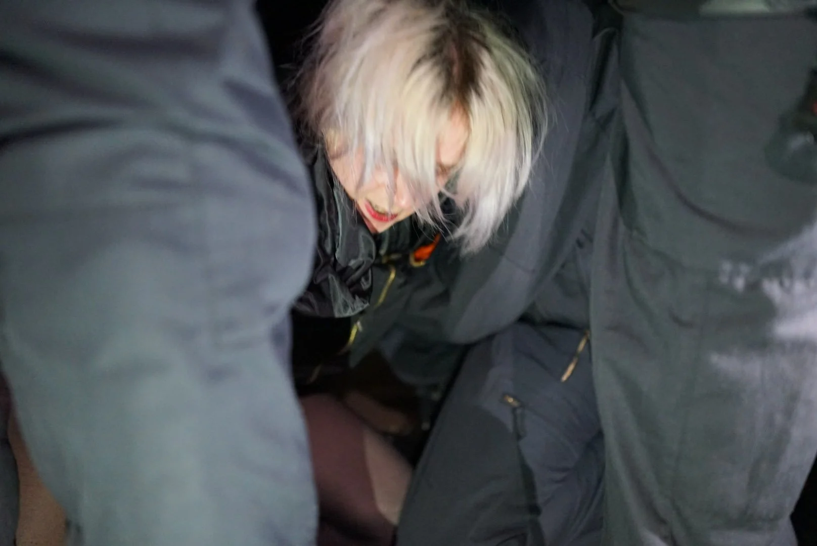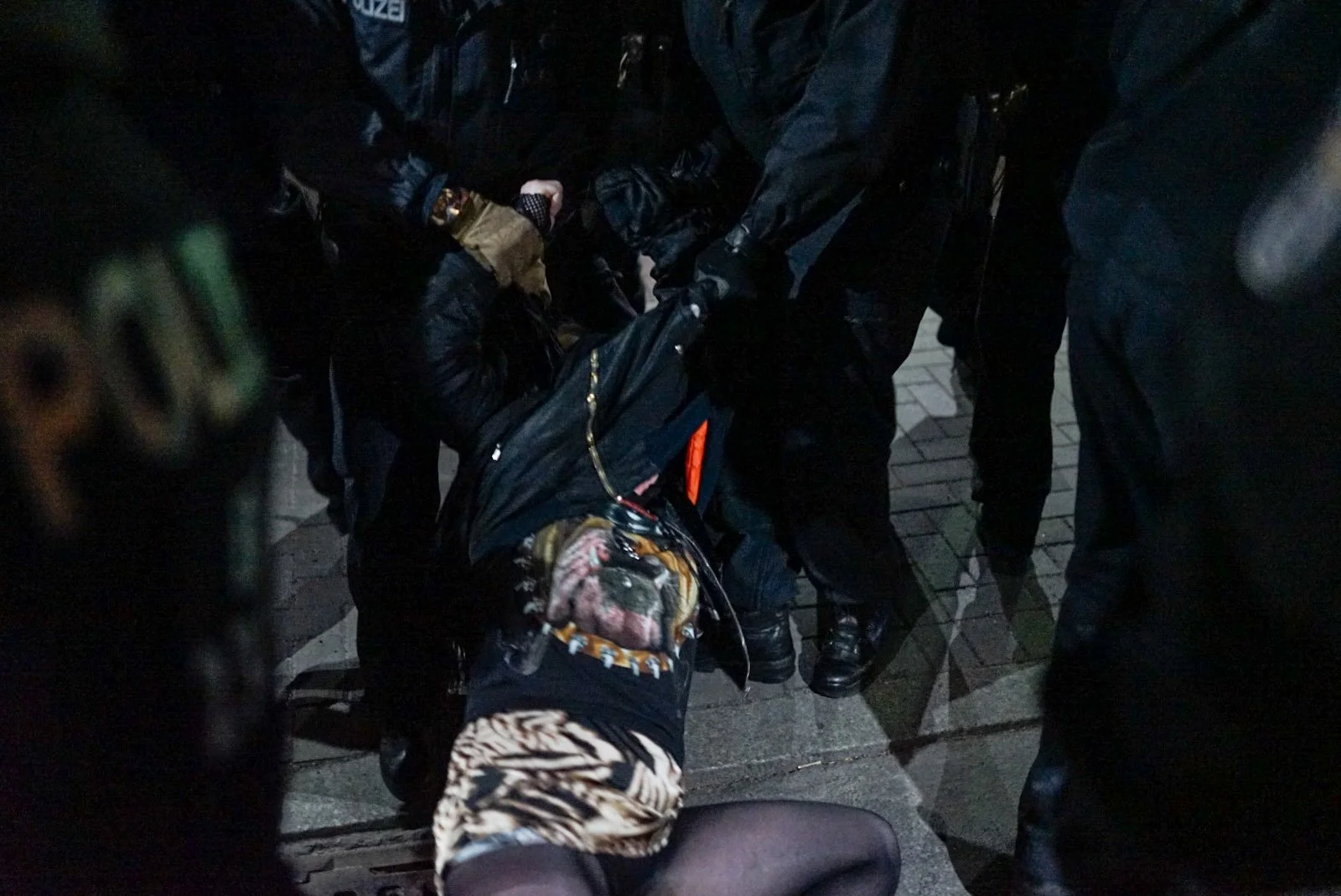 Demonstrierende wurden bei Festnahmen zu Boden gebracht. In einem Fall drückte ein Beamter sein Bein auf den Nacken einer Festgenommenen und schränkte dadurch ihre Atmung stark ein.