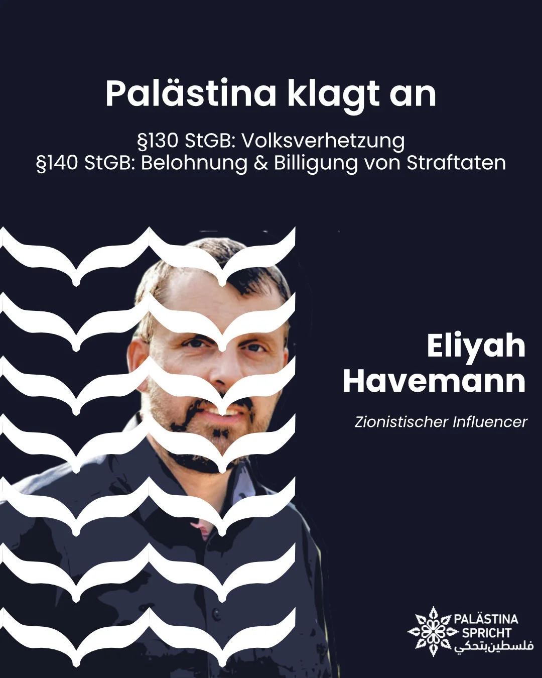Der zionistische Influencer Eliyah Havemann hat in den letzten Monaten öffentliche Äußerungen gemacht, die Straftatbestände erfüllen: Volksverhetzung; Belohnung und Billigen Straftaten und Kriegsverbrechen.